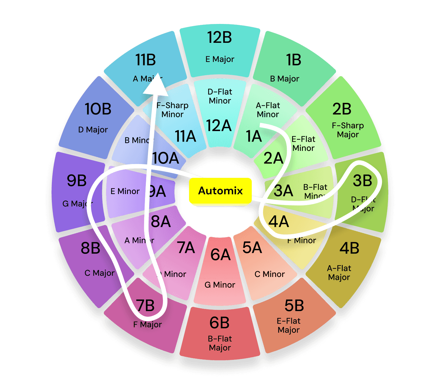 Mix within the same key: A track in 8A will mix perfectly with another track in 8A.