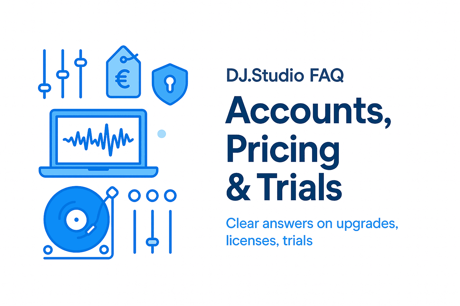 Find answers to some commonly asked questions about DJ.Studio - relating to accounts, pricing, and trials! Reach out to support for more.