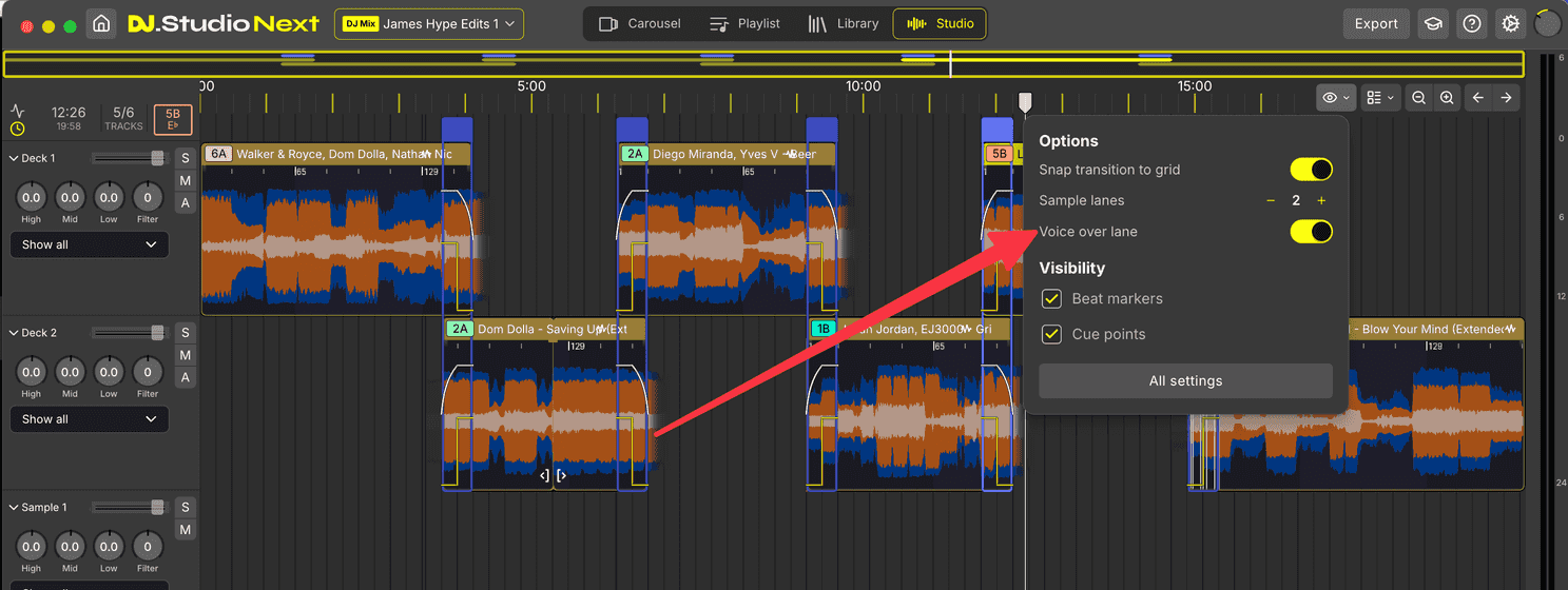 With the Input lane, recording becomes part of your mix process instead of a separate step. Whether you're adding spoken intros, radio-style segments, or even external audio like instruments, everything happens exactly where you’re already working.