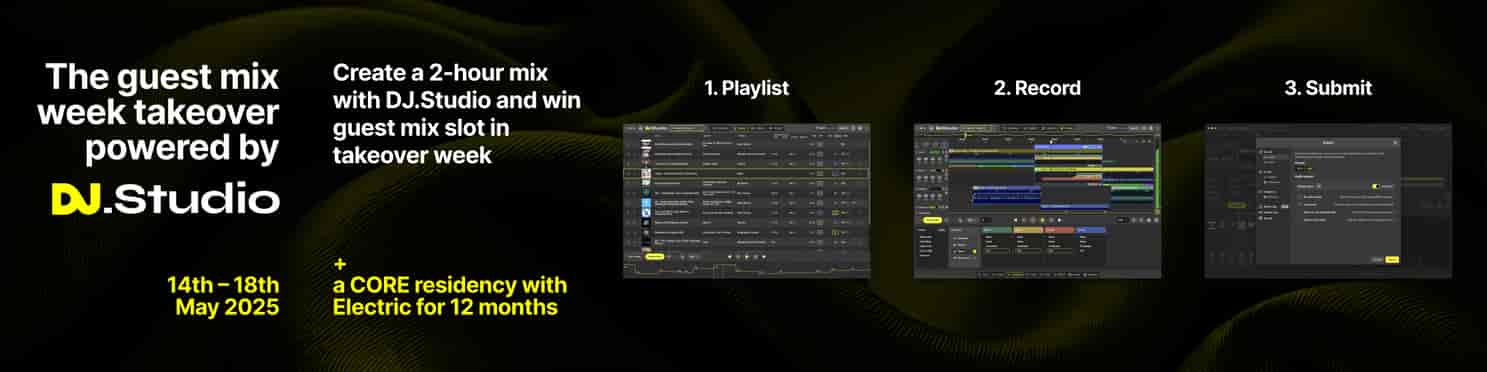 DJ.Studio is launching a guest mix contest that gives you the chance to secure one of 10 exclusive guest mix slots during the DJ.Studio Takeover week on Electric Radio! If you’ve got the skills to blend a killer 2-hour set and a passion for genres like House, Tech, Future, Progressive, Trance, or Techno, this is your moment to shine.