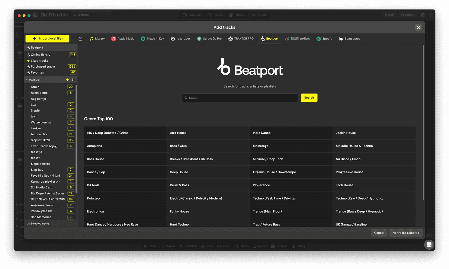 Thanks to Beatport Streaming, you can upload your Spotify playlists to DJ.Studio legally.